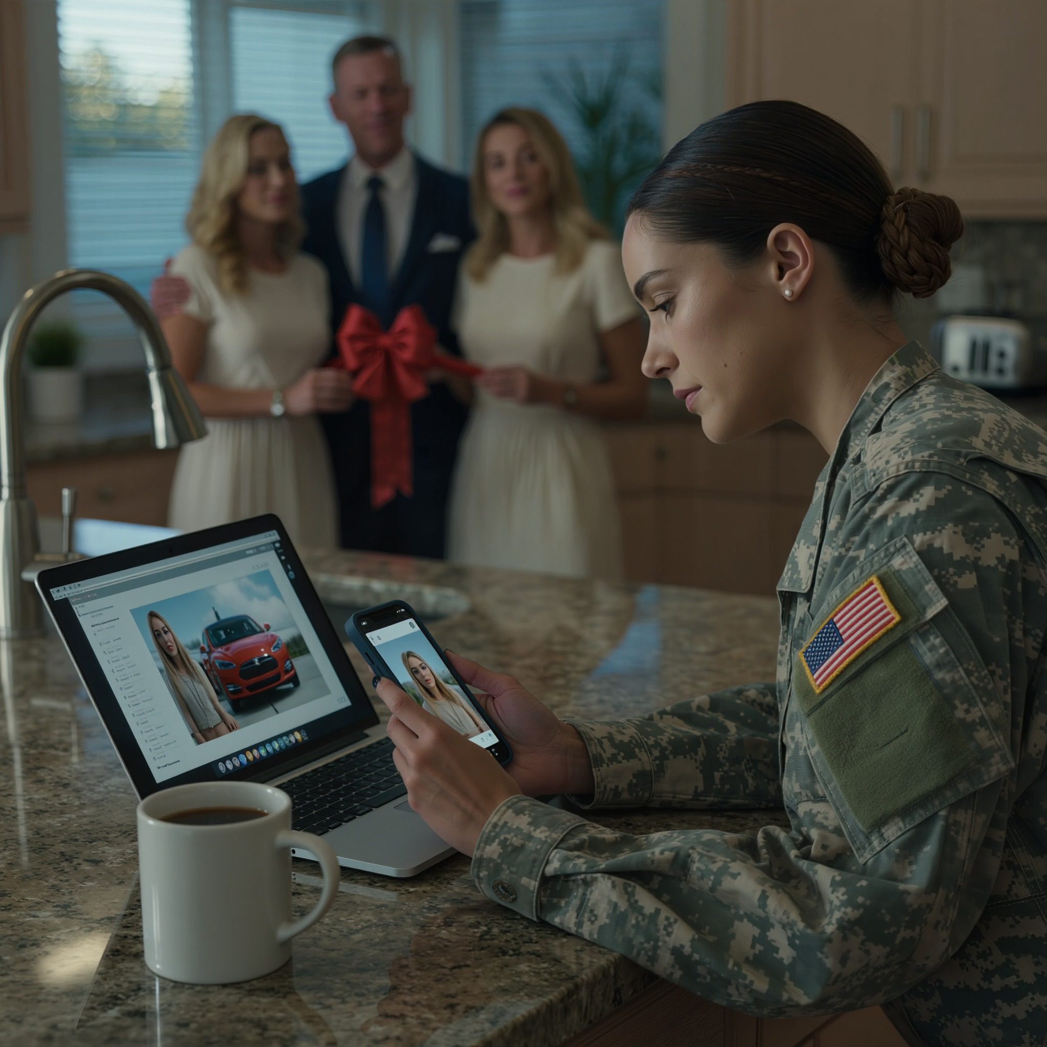 Het lange verhaal begint op een maandagochtend in Fort Liberty. Ik was in uniform en zat aan mijn keukentafel een budgetoverzicht door te nemen voordat ik naar kantoor ging. Mijn telefoon trilde. Ik keek naar beneden en zag de naam van mijn zus Samantha bovenaan mijn meldingen staan. Ze had een foto geplaatst van een Tesla-dealer in Austin.