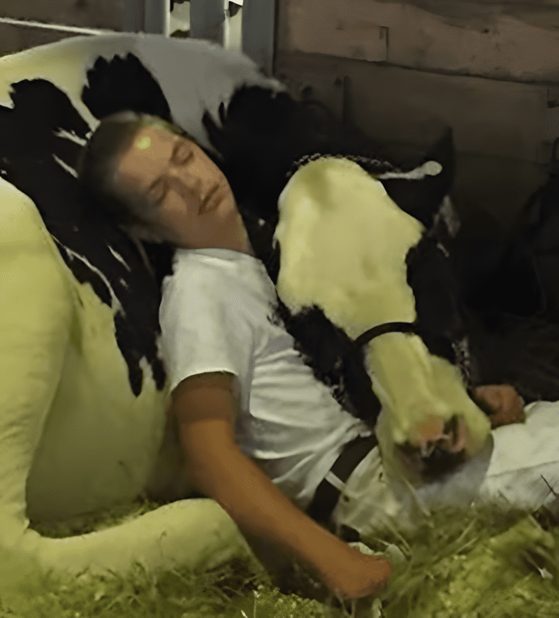 Vijftien-jaar-oude Mitchell Mijnwerker, namen onlangs deel aan de melkvee tonen aan de Iowa State Fair met zijn koe, Audri. Ondanks hun inzet en het harde werk, zij geplaatst vijfde van de zeven concurrenten. Beide waren uitgeput daarna. Wanneer Mitchell ‘ s vader de kamer binnenkwam, vond hij hen beide dommelen en vastgelegd op het moment met een foto. De foto, onderschrift “Onze zoon Mitchell en zijn vaars na gisteren, op de” snel viral ging, is het verzamelen van meer dan 15.000 likes de volgende dag.