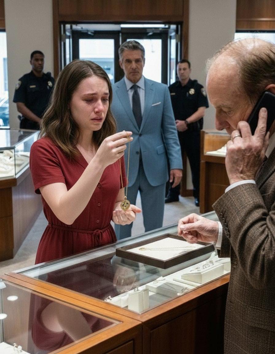 Na de scheiding stond ik er alleen nog met een kapotte telefoon en de oude ketting van mijn moeder – mijn laatste kans om de huur te betalen. De juwelier wierp er nauwelijks een blik op… toen verstijfden zijn handen. Zijn gezicht werd lijkbleek. ‘Waar heb je die vandaan?’ fluisterde hij. ‘Die is van mijn moeder,’ zei ik. Hij deinsde achteruit en stamelde: ‘Juffrouw… de meester zoekt u al twintig jaar.’ En toen ging de achterdeur open.