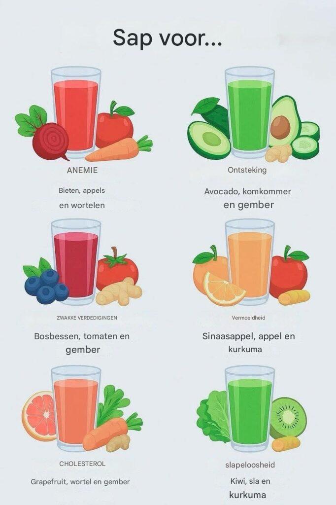 Natuurlijke sappen voor al uw behoeften: energie, immuniteit, ontstekingsremming, slapeloosheid en meer.