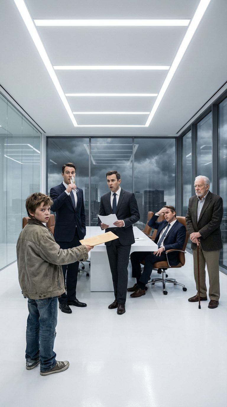 Net toen ze op het punt stonden een miljoenencontract te tekenen, fluisterde de jongen: « Ik stuur dit even terug. » De reactie van de oprichter deed de arrogante managers bleek wegsmelten… maar het echte geheim zat nog steeds verborgen in die envelop.