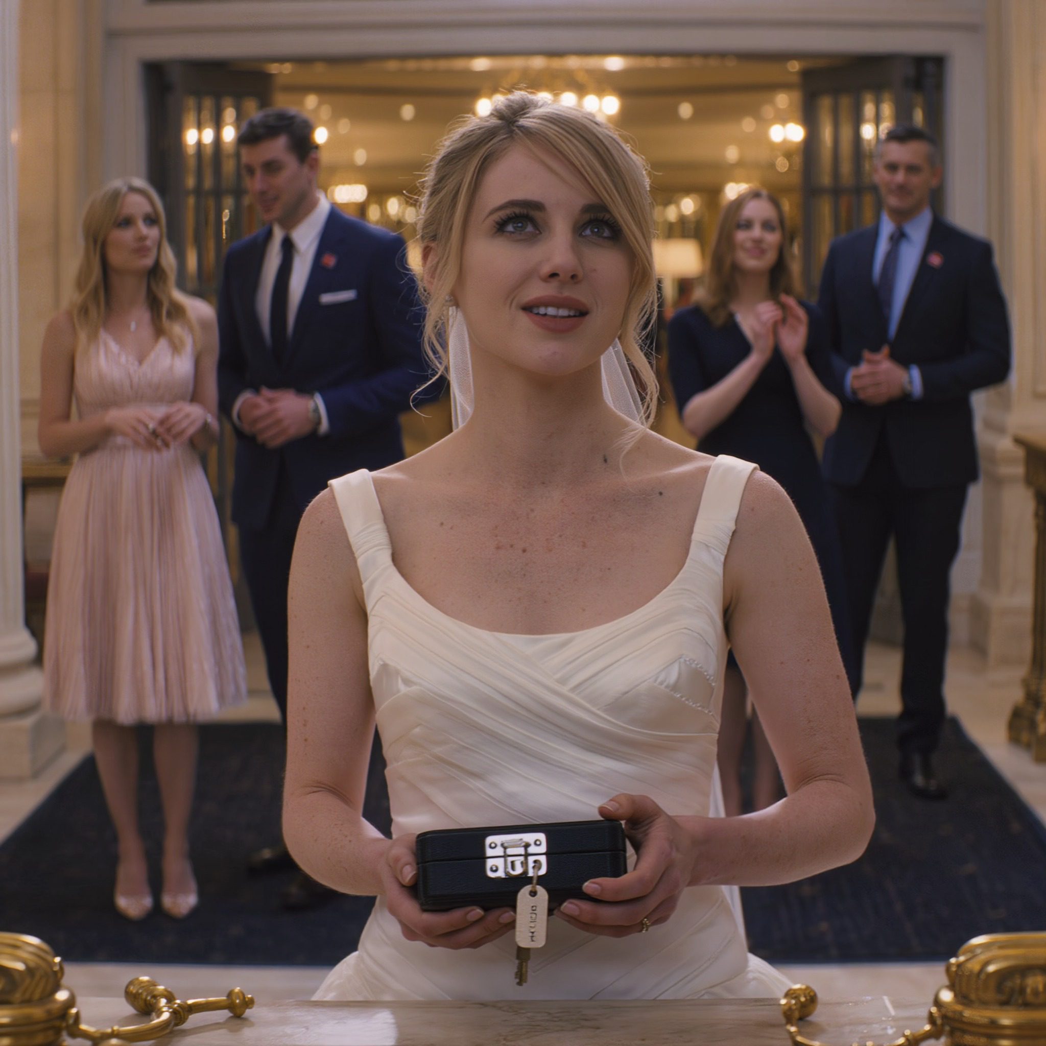 We stapten de nacht in en in een taxi die vaag naar dennengeur en lange verhalen rook. Tien minuten later stonden we voor de draaideuren van de Monarch. Mijn jurk sleepte achter me aan als de geest van een ceremonie die er nooit toe had gedaan. Amanda droeg de zwarte doos tegen haar borst als een relikwie.