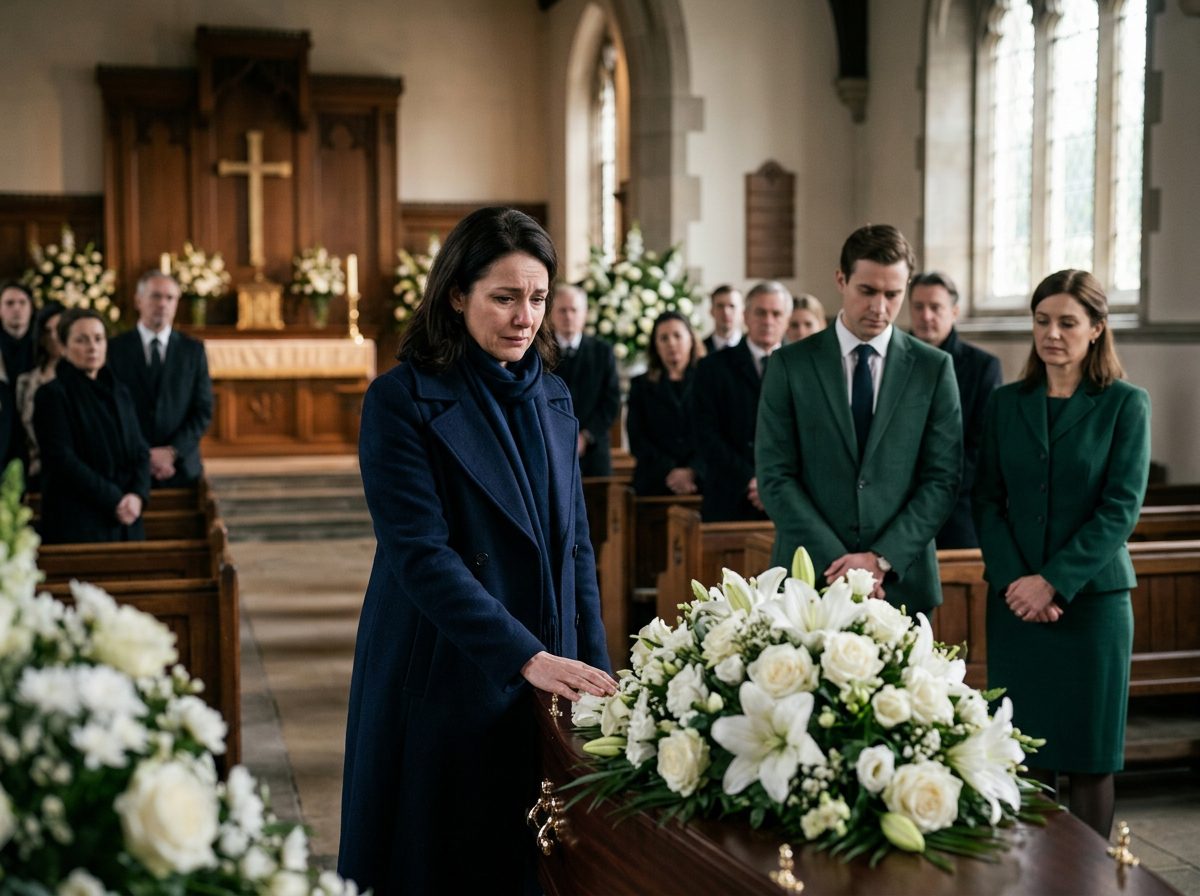 Raúl stond als aan de grond genageld bij de ingang, nog steeds de hand vasthoudend van de vrouw naast hem. Ze was jong, elegant, perfect gekleed in zwart, haar lippen trilden lichtjes. Misschien dacht ze dat ze onopgemerkt in het verdriet zou opgaan. Maar bij een rouwplechtigheid in de buurt ontgaat niets de aandacht – al helemaal niet een echtgenoot die hand in hand met een andere vrouw arriveert.