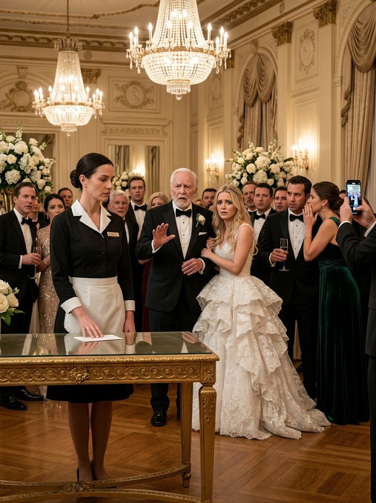 Zwarte letters op een witte rechthoek. Goedkoop. Scheef. Vastgeklemd aan dezelfde zwarte jurk die het cateringpersoneel droeg, alsof degene die het had afgedrukt de belediging praktisch in plaats van opzettelijk wilde laten lijken. De weddingplanner speldde het met trillende vingers op me en keek me geen moment in de ogen. Ze bleef naar de deuren van de balzaal kijken, zoals mensen doen als ze bang zijn dat iemand met macht een vertraging opmerkt en besluit die vertraging als straf te gebruiken.