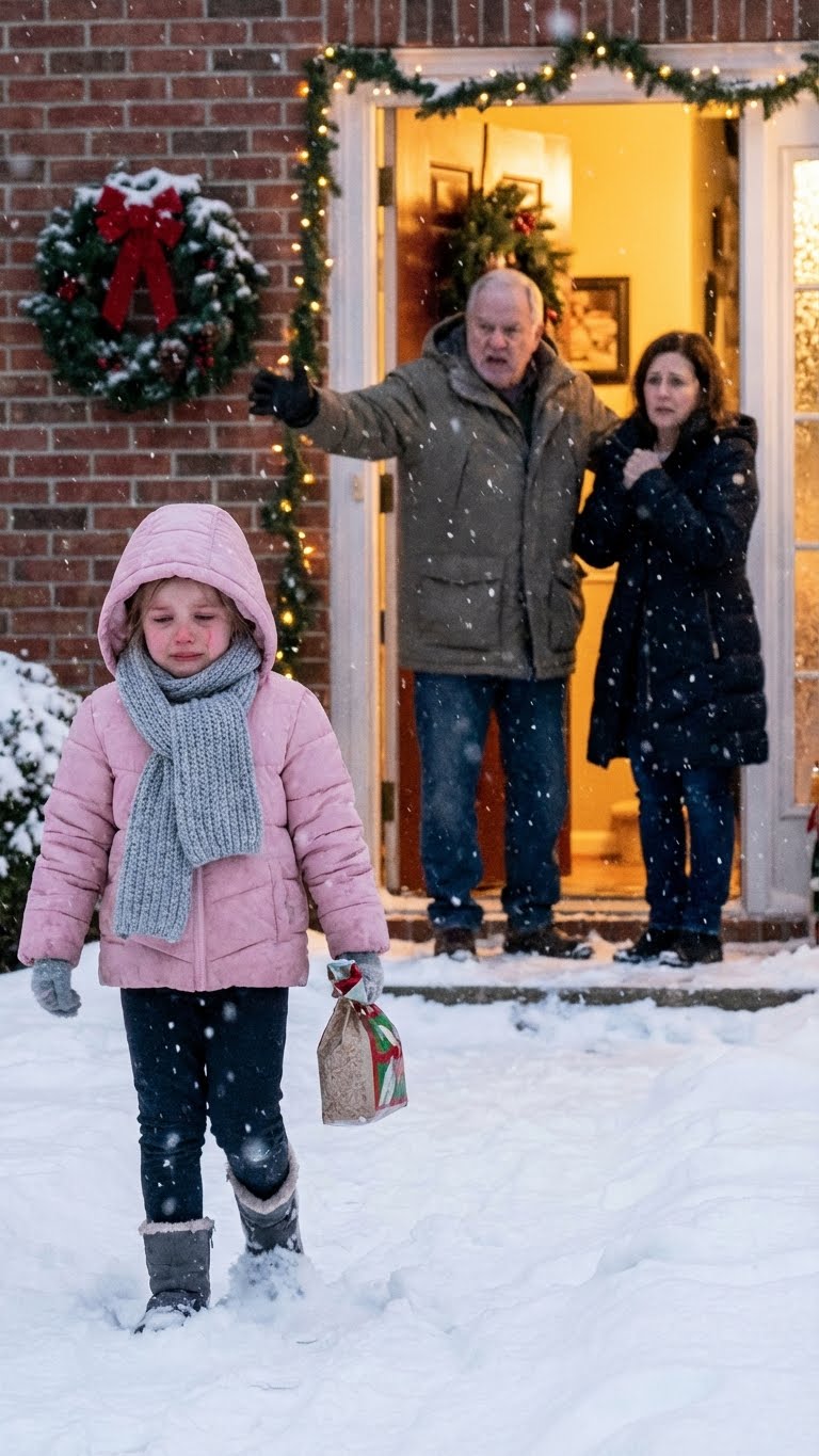 Leo sprong uit de auto en gooide zijn eigen dikke wollen jas over haar heen. Hij tilde haar kleine, rillende lichaam op en droeg haar naar binnen, de warmte van de auto in.
