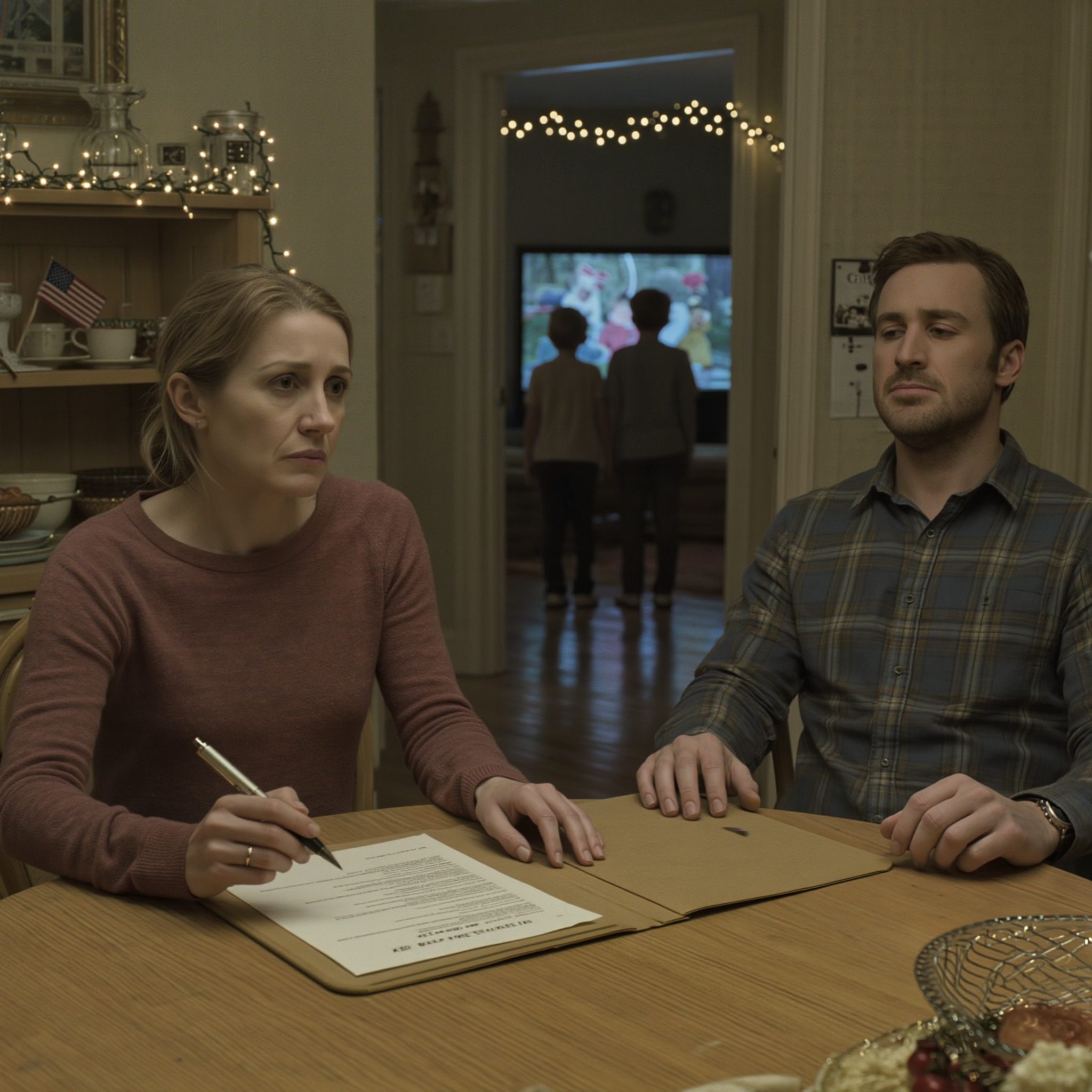 Onze twee kinderen zaten in de woonkamer naar tekenfilms te kijken, hun gelach sijpelde door de kier in de deur.
