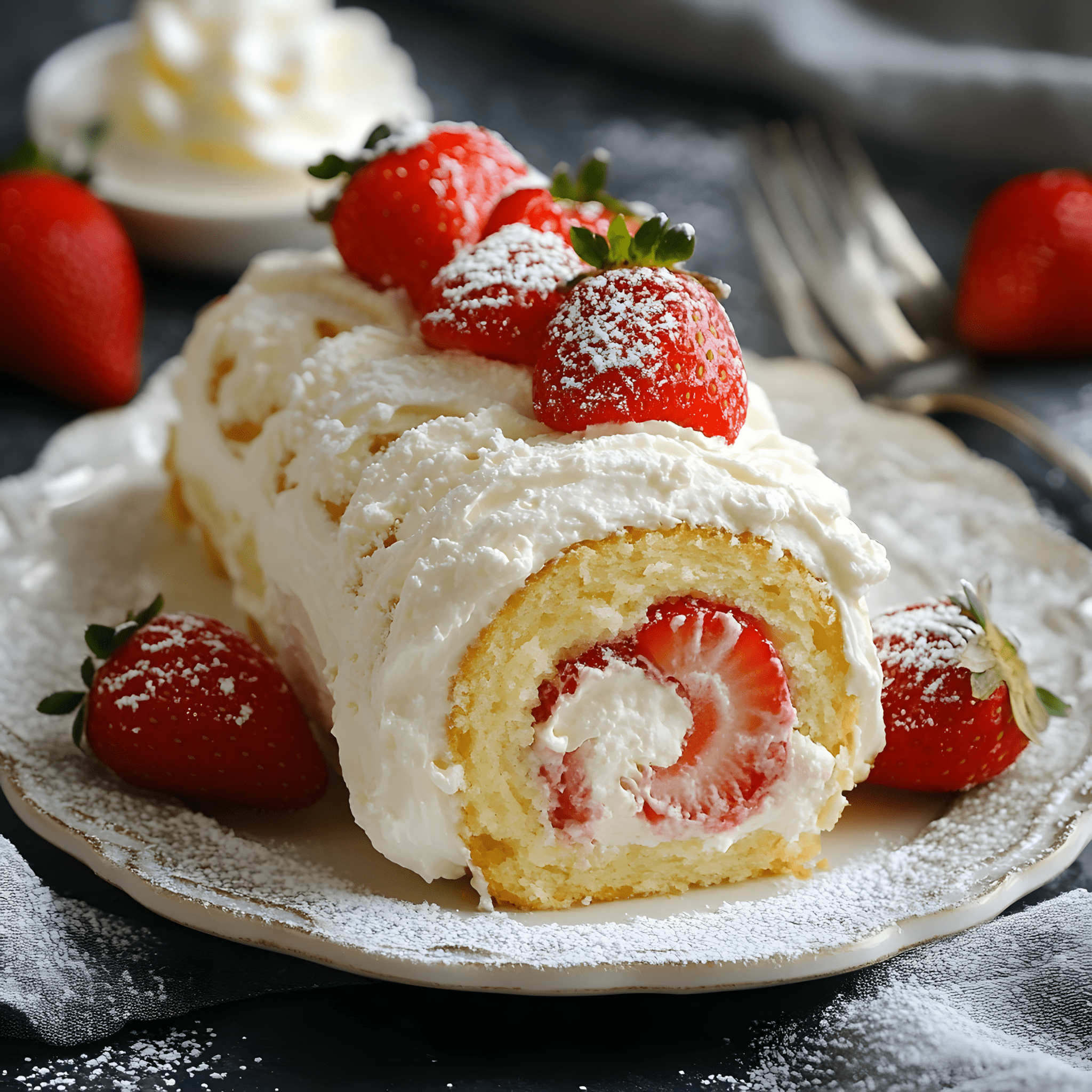 🍓 Opgerolde Aardbeientaart met Luchtige Mascarponecrème