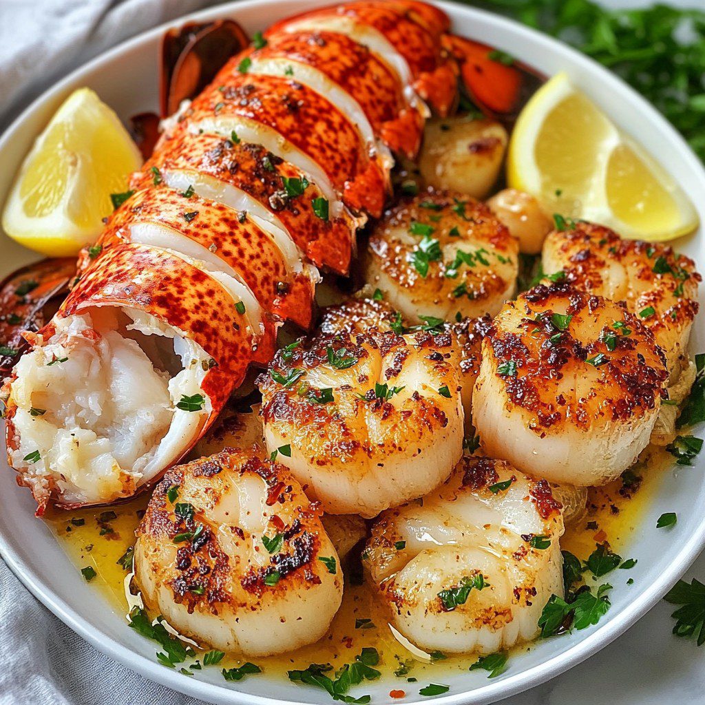 Kreeft en coquilles met knoflookboter Ingrediënten (voor 2 personen): 2 kreeftenstaarten (of 1 hele gekookte, gepelde kreeft) 200 g coquilles (zonder kuit) 3 el ongezouten boter 2 teentjes knoflook, fijngehakt 1 el vers citroensap 1 el fijngehakte verse peterselie Zout en versgemalen zwarte peper 1 el olijfolie (Optioneel) Citroenschil, chilivlokken, droge witte wijn (om af … Lire plus
