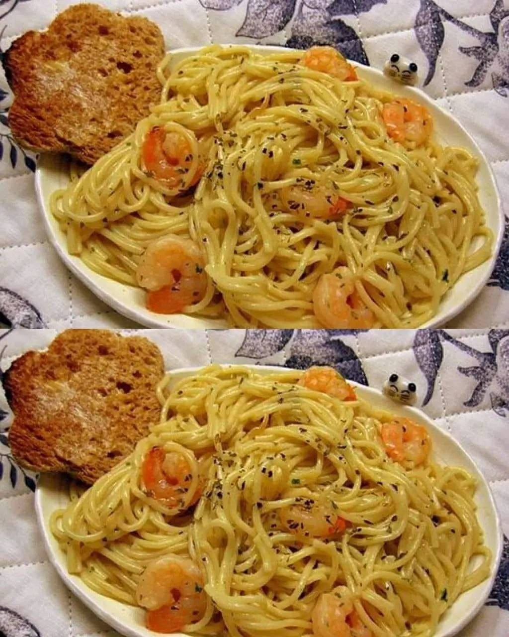Een heel eenvoudig idee voor pasta met garnalen en basilicum, erg lekker en supermakkelijk te maken. Ingrediënten 350 g Pasta 150 g crème fraiche 300 g gepelde roze garnalen 3 sjalotten 50 g boter 1 glas citroenwater 1 bosje basilicum Voorbereiding Zie pagina 2