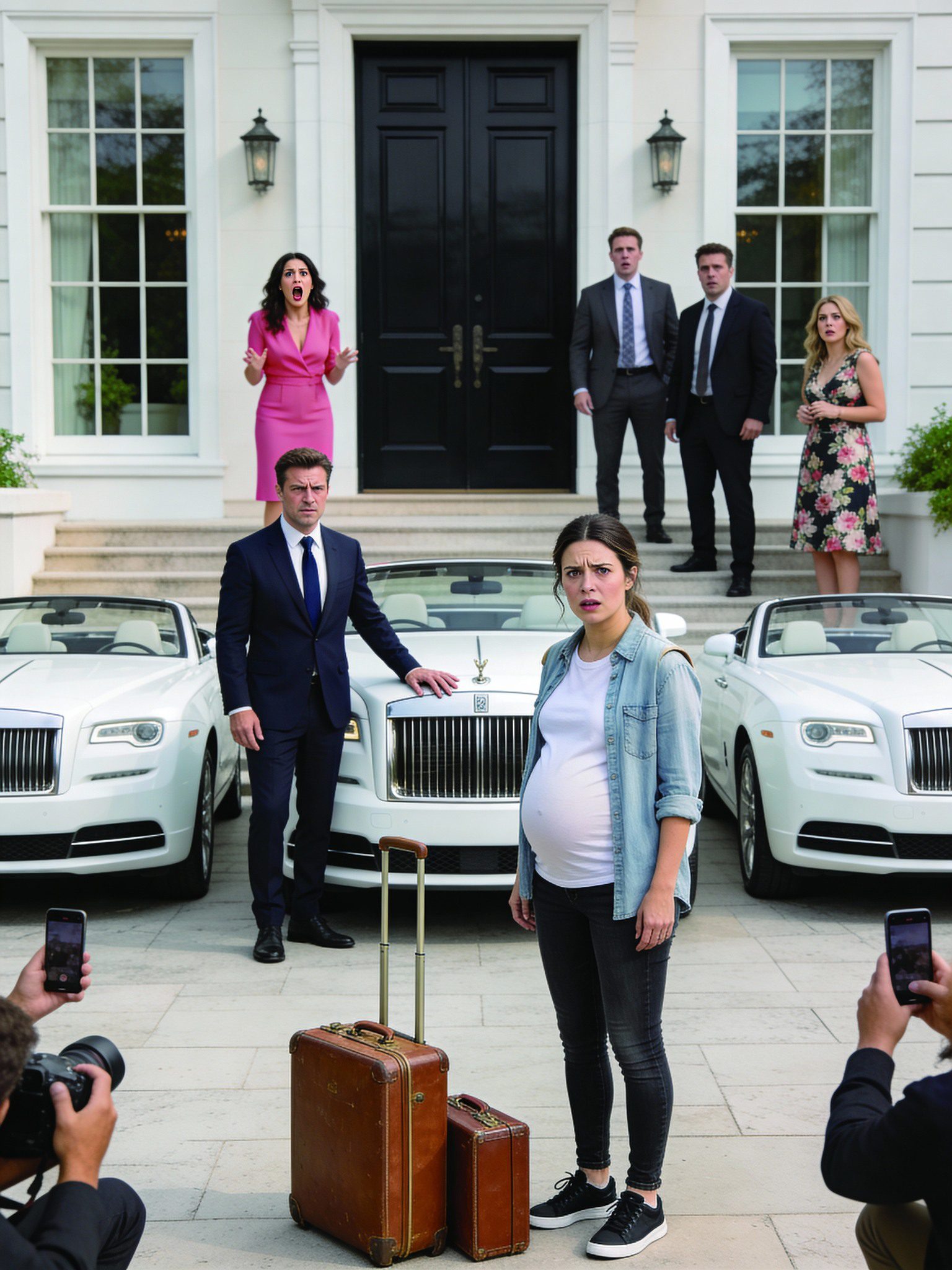 ‘Pak haar spullen in,’ beval mijn schoonmoeder, alsof ik slechts een oud voorwerp was dat weggegooid kon worden. Ik greep naar mijn buik en smeekte: ‘Kieran, dit is jouw kind.’ Hij antwoordde koud: ‘Jij hoort niet in mijn wereld thuis.’ Ik dacht dat ik alles kwijt was – totdat er twee Rolls-Royces voor de poort stopten, mijn broer uitstapte en zei: ‘Raak haar nog een keer aan, en alles wat je bezit verdwijnt.’