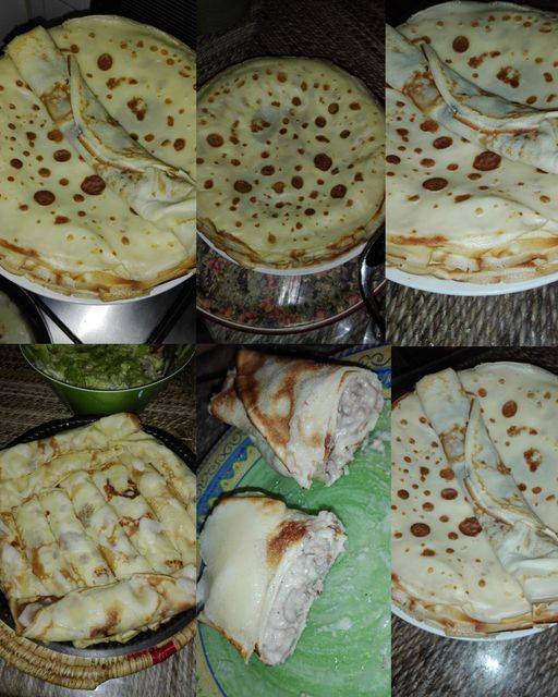 Heerlijke hartige pannenkoeken, gevuld met gehakt en gegratineerde kaassaus, een waar genot om te proberen in geval van nood.