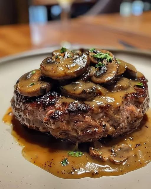 Dit klassieke recept voor Salisbury steak, perfect bereid, is een troostrijk en smaakvol gerecht, ideaal voor een drukke doordeweekse avond. De rijke saus, het malse vlees en de hartige uien zorgen voor een maaltijd die zeker in de smaak zal vallen.
