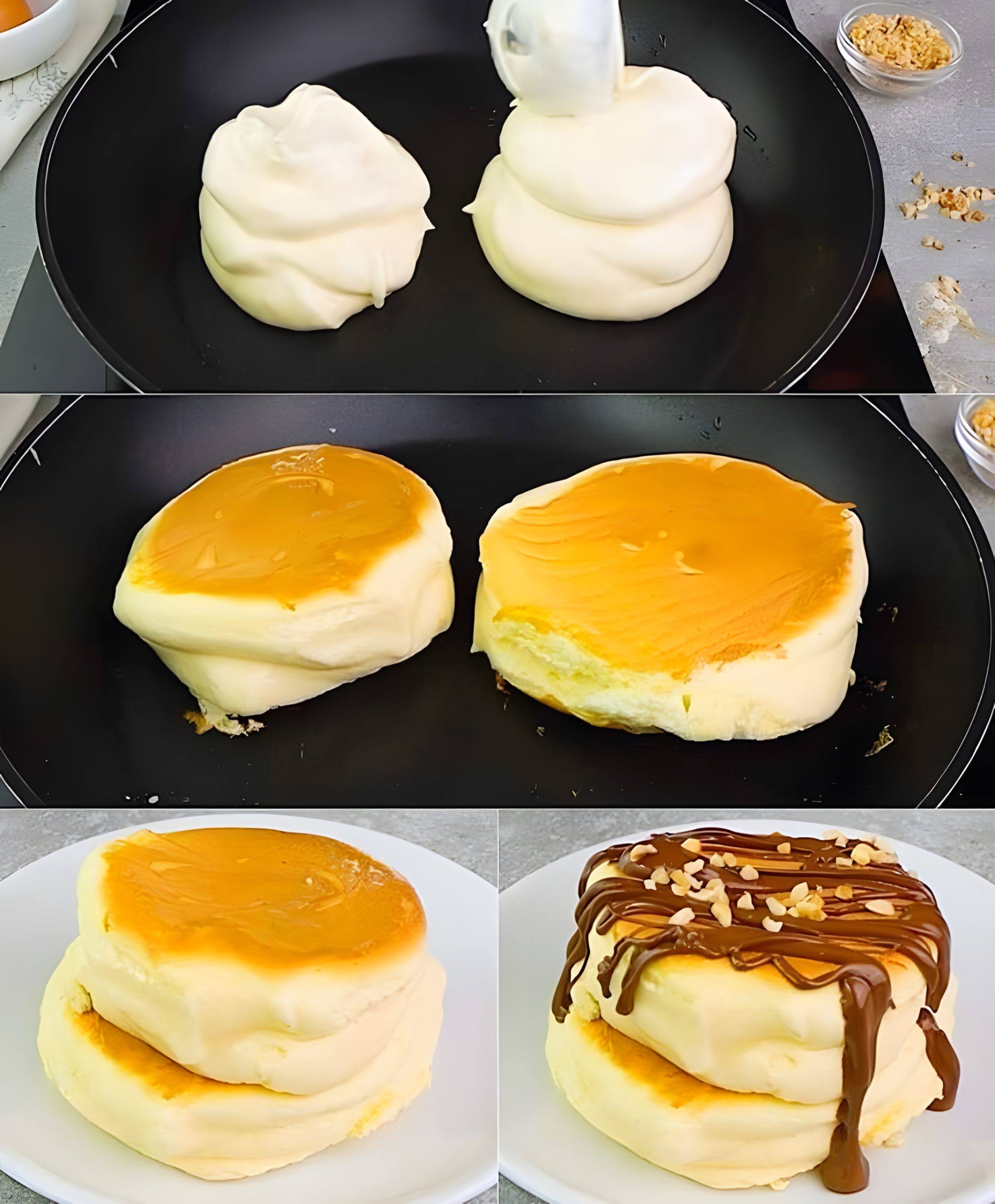 Wil je die dikke, luchtige soufflépannenkoeken maken zoals je ze in films en cafés ziet? 😍 Dit recept is simpel, snel en onweerstaanbaar lekker! Perfect als ontbijt of als luxe dessert. 🍽️💛
