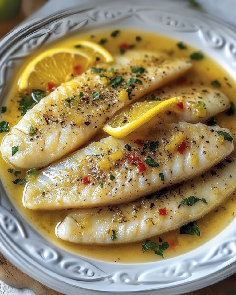 Tongfilets met citroen en peterselie zijn een licht visgerecht dat de delicatesse van tong, de frisheid van citroen en de geur van peterselie combineert in een subtiele botersaus. Dit snelle visrecept, geschikt voor zowel de pan als de oven, is klaar in ongeveer 20 minuten, perfect voor een verfijnd diner of een speciale gelegenheid. Met zijn smeltende textuur en mediterrane smaken belichaamt deze eenvoudig te bakken vis de gezonde Franse keuken. Serveer met gestoomde groenten of rijst voor een evenwichtige en elegante maaltijd.