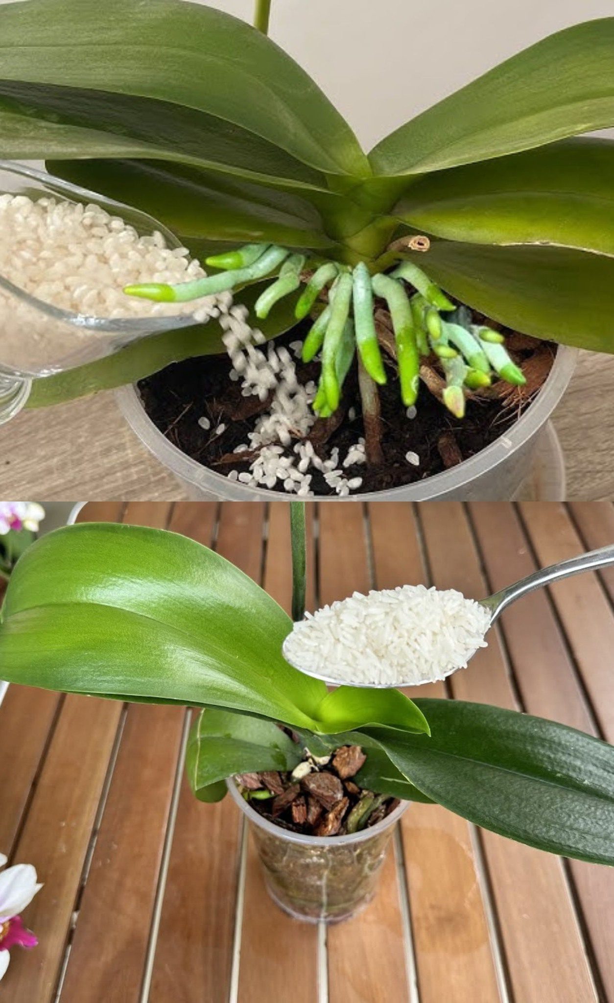 Gebruik dit verdunde rijstwater een keer per maand om uw orchideeën water te geven tijdens het groeiseizoen (lente en zomer).