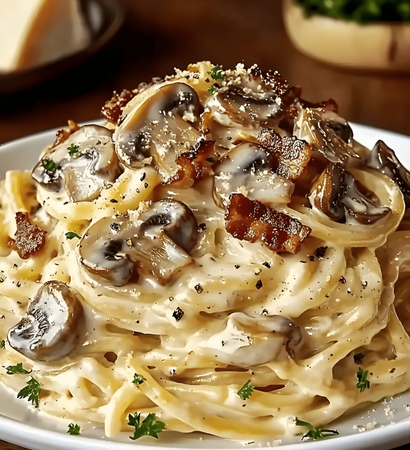 🍝🥓 Romige Knoflook-Champignon & Bacon Pasta – Een Hemelse Verwennerij! 🥓🧄