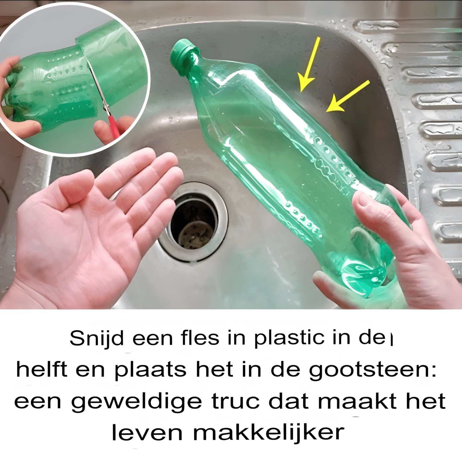 Snijd een plastic fles doormidden en zet hem in de gootsteen: een briljante truc die het leven makkelijker maakt