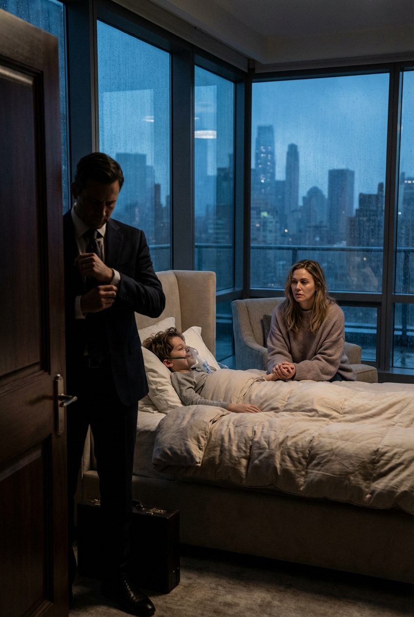 Dorian Hale, de vader van de jongen, kwam binnen met een zelfverzekerde, keurig geklede uitstraling en de arrogantie van een man die dacht dat de wereld om hem heen draaide. Hij wierp nauwelijks een blik op het zwakke apparaat. Hij keek nauwelijks naar het kind wiens borstkas moeizaam omhoogkwam. In plaats daarvan bekeek hij zijn spiegelbeeld in een glazen paneel, trok zijn jas recht en kondigde aan dat hij weg moest voor een « dringende onderhandeling », het soort gebeurtenis dat volgens hem hun leven in stand hield, de reden waarom ze « tijdelijke ongemakken verdroegen ».