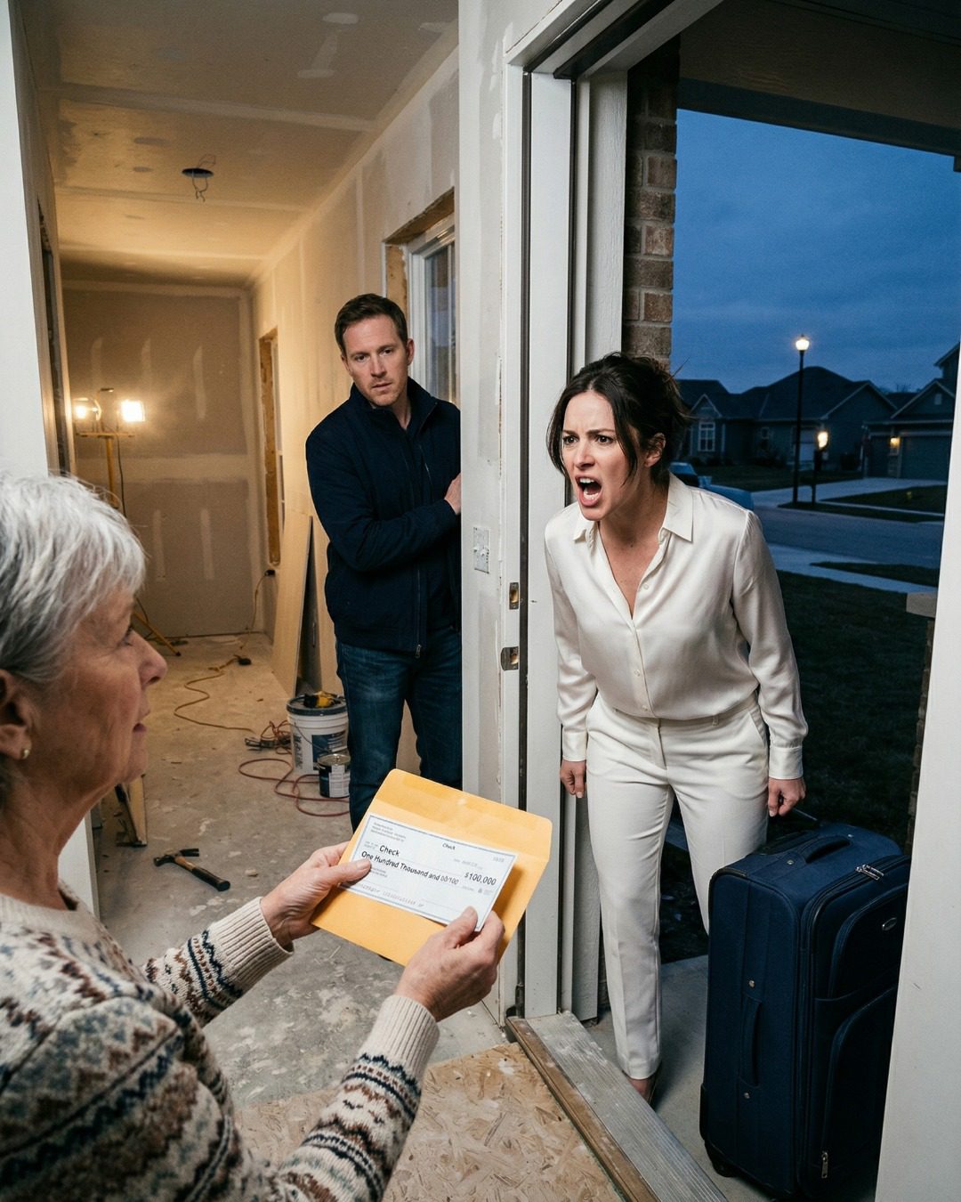 Ze droeg een ivoorkleurige broek, een lange beige cardigan en de uitdrukking van een vrouw die een grote filantropische schenking ter ere van zichzelf onthulde. Haar zilvergrijze haar zat perfect. Haar lippenstift was fris. Ze gedroeg zich zoals altijd in huizen die ze niet zelf had verdiend, maar waar ze wel invloed op wilde uitoefenen – kin omhoog, een beheerste glimlach, een zelfverzekerde kalmte die suggereerde dat de aanwezigen haar eigenlijk al dankbaar zouden moeten zijn.