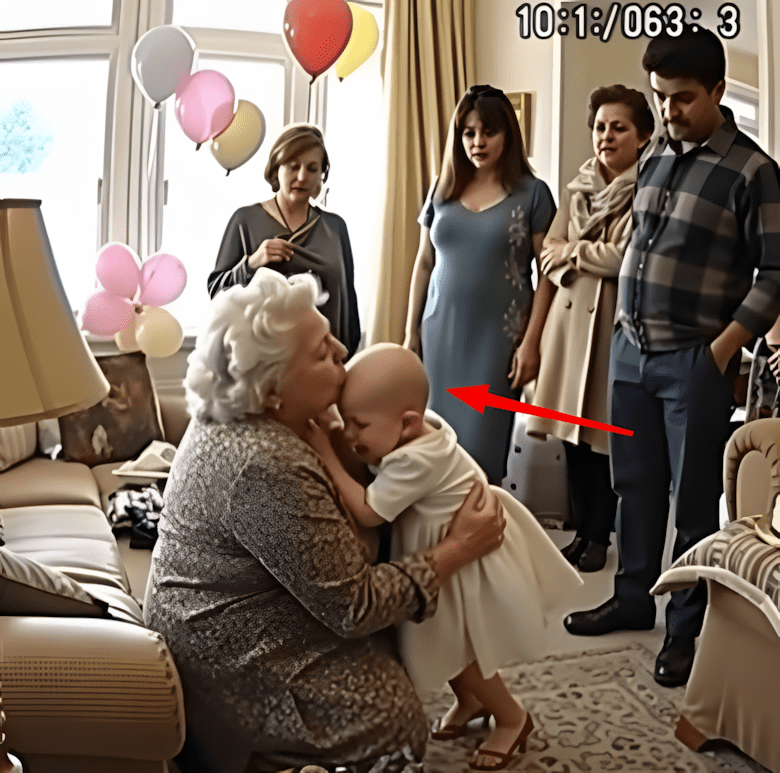Tijdens de familiebijeenkomst verstijfde ik van schrik toen ik het hoofd van mijn kleindochter zag