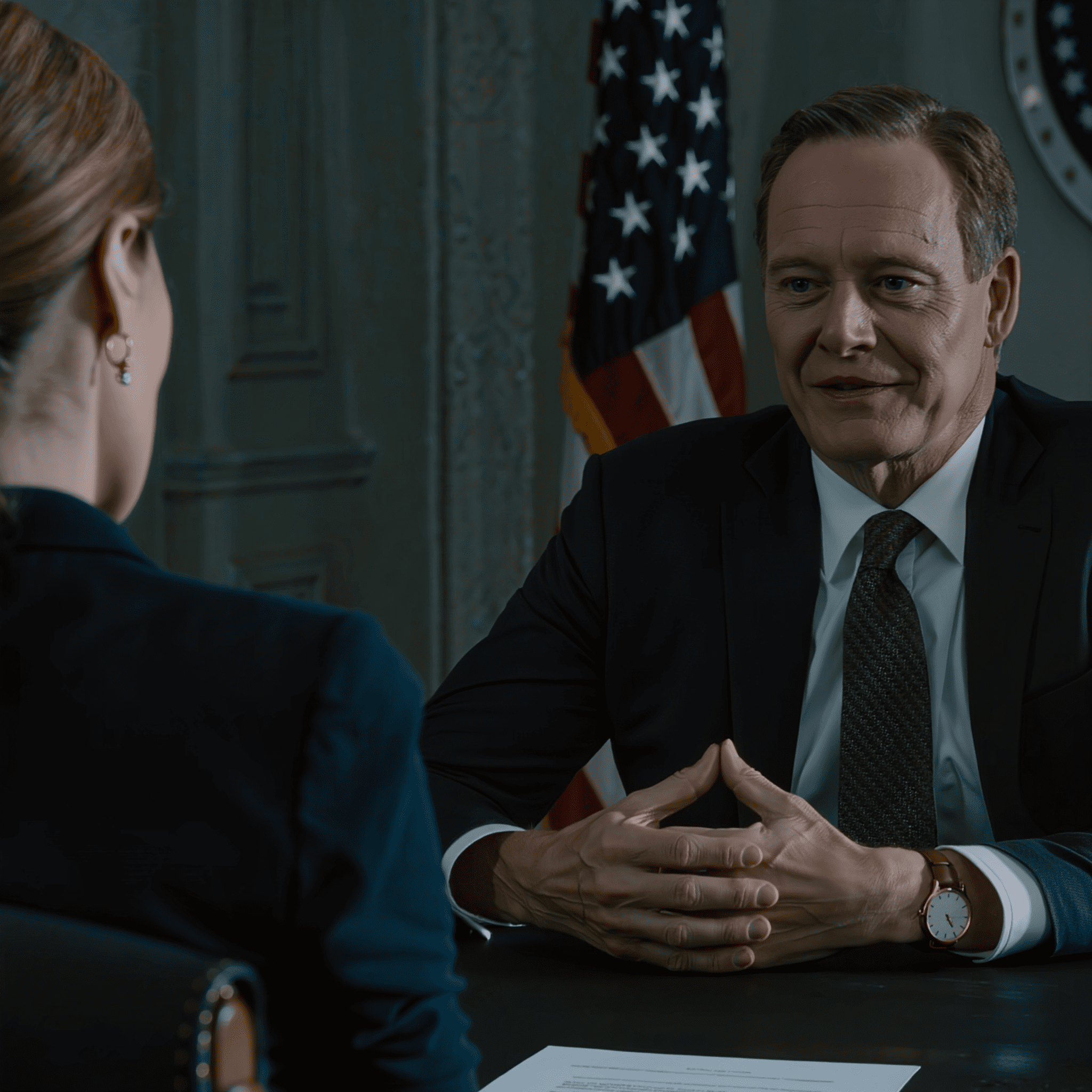 Thaddius riep me vlak voor één uur terug naar zijn kantoor. Hij stond dit keer bij het raam, met zijn handen in zijn zakken, de skyline strekte zich achter hem uit als een toneeldecor. Hij bood me geen stoel aan.