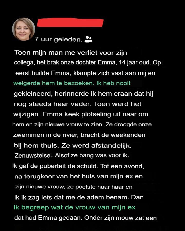 Toen mijn man vertrok voor een jongere collega, was onze dochter Emma pas 14.