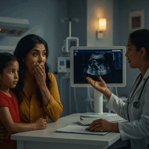 Terwijl de sonde over Lily’s buik gleed, fronste de dokter zijn wenkbrauwen. Zijn ogen werden groot. Hij stopte midden in zijn zin en staarde naar het beeld.