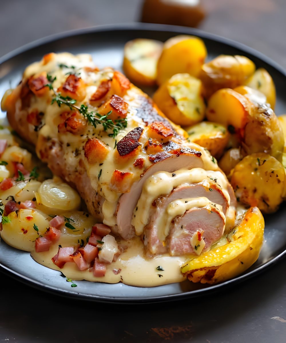 Wat dit gerecht zo onweerstaanbaar maakt, is de combinatie van de zachtheid van de varkenshaas en de romigheid van Boursin. Deze heerlijke roomkaas, gekruid met knoflook en fijne kruiden, geeft het gerecht een karaktervolle smaak zonder de subtiele smaak van het vlees te overheersen. Voeg daarbij een rijke saus met crème fraîche en spekjes, en je hebt een gerecht waar iedereen dol op zal zijn.