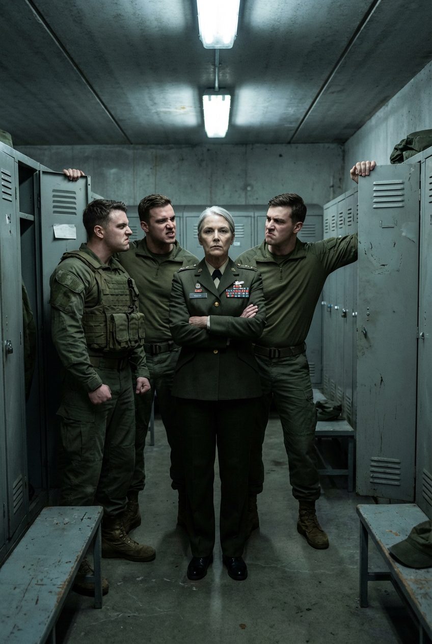 Als je ooit in een ruimte hebt gestaan en met absolute zekerheid wist dat de mensen tegenover je geen idee hadden met wie ze te maken hadden, dan begrijp je de precieze stilte die over het lichaam van commandant Evelyn Hale neerdaalde toen de onderarm van de soldaat haar luchtpijp afsneed. De kleedkamer rook naar bleekmiddel en bravoure, metalen kluisjes en opgedroogd zweet, en naar het soort achteloos zelfvertrouwen dat alleen mannen bezitten die nog nooit in het nauw gedreven zijn door iets gevaarlijkers dan hun eigen spiegelbeeld.