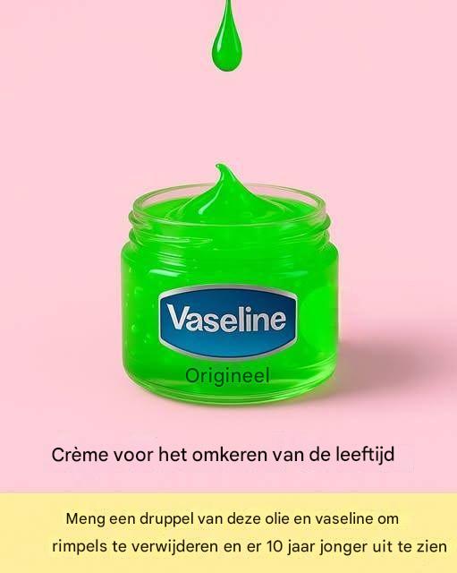Vaseline (vaseline) werkt door vocht vast te houden en een beschermende laag op je huid te creëren. In combinatie met voedende, anti-aging oliën transformeert het in een krachtig middel tegen rimpels.