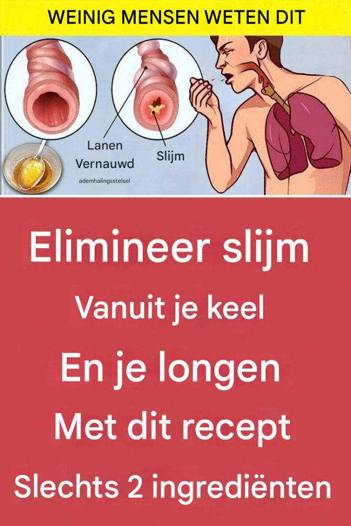 Slijm in de keel en longen kan erg onaangenaam zijn en hoesten, verstopping en ademhalingsproblemen veroorzaken. Gelukkig is er een eenvoudige en effectieve natuurlijke oplossing om het snel te verwijderen. Met slechts twee ingrediënten helpt dit zelfgemaakte recept je luchtwegen vrij te maken en je ademhaling weer soepel te maken.