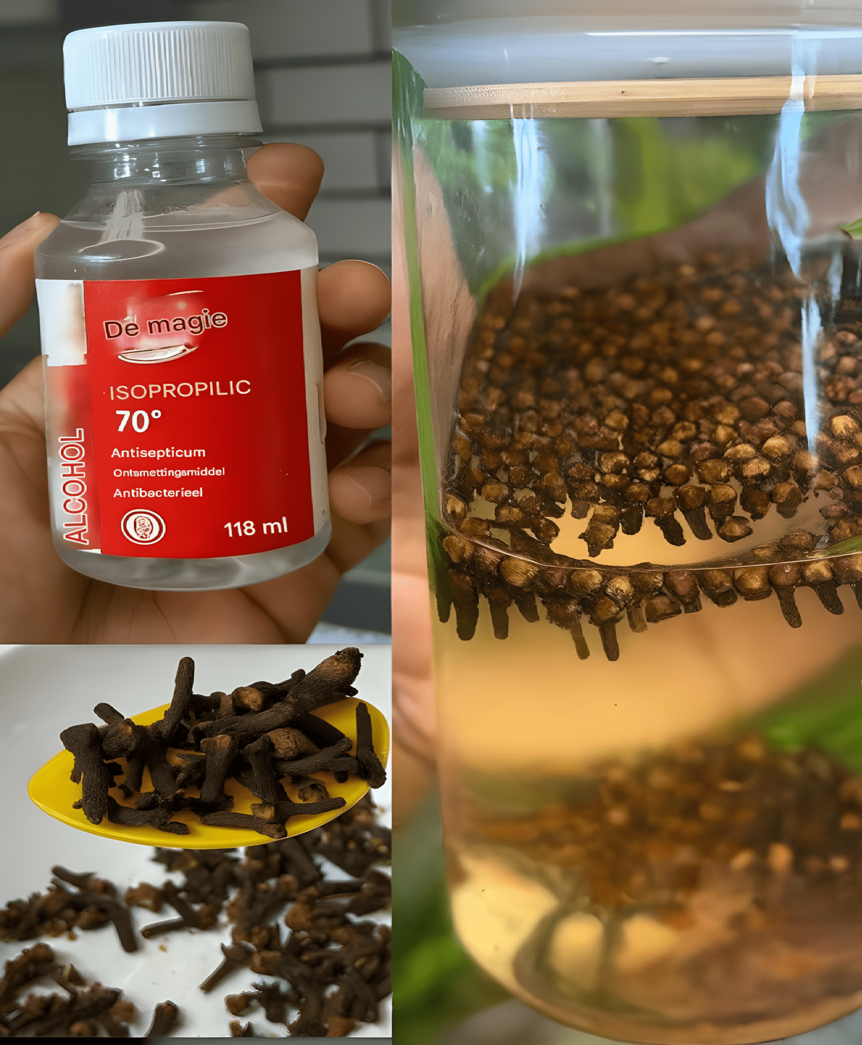 • Waarom het werkt:  Alcohol heeft ontsmettende eigenschappen en kruidnagel versterkt dit effect met zijn antimicrobiële werking.