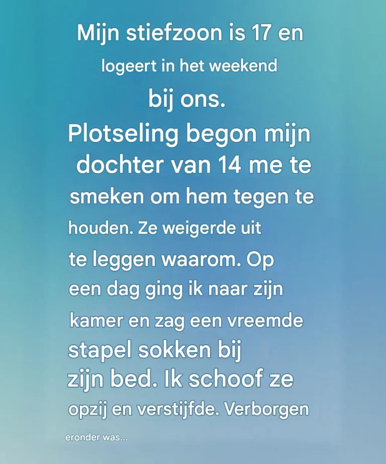 Op een middag, terwijl ik de kamer van mijn stiefzoon aan het opruimen was, zag ik een vreemde berg sokken naast zijn bed liggen. Het leek een gewone tienerrommel, maar toen ik ze opzij schoof, ontdekte ik een klein doosje dat er zorgvuldig onder was gestopt. Er zaten gevouwen brieven in – geschreven in het handschrift van mijn dochter.