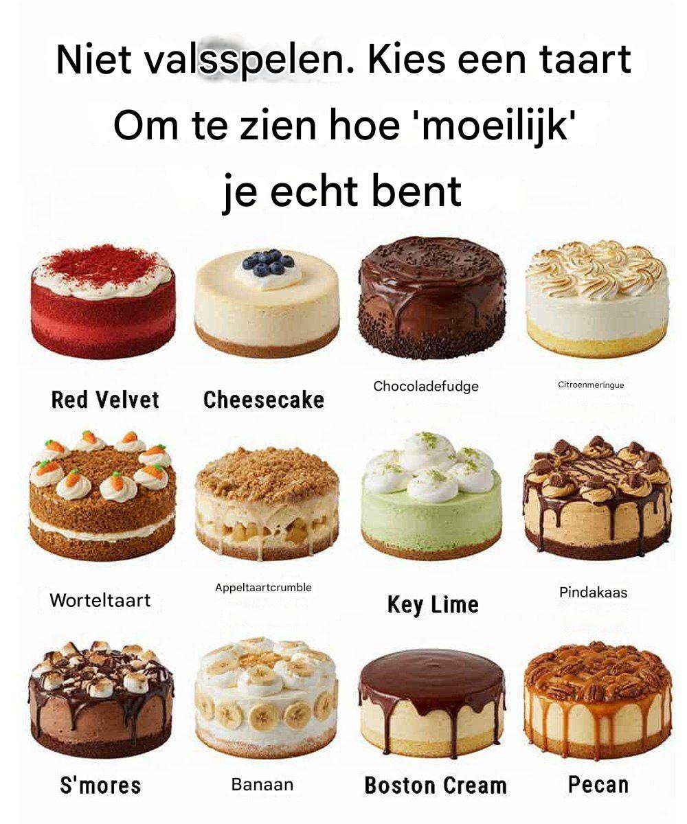 Geloof het of niet, je taartkeuze kan een klein inkijkje geven in je innerlijke wereld – vooral als het gaat om hoe « moeilijk » (of prachtig complex) je eigenlijk bent.