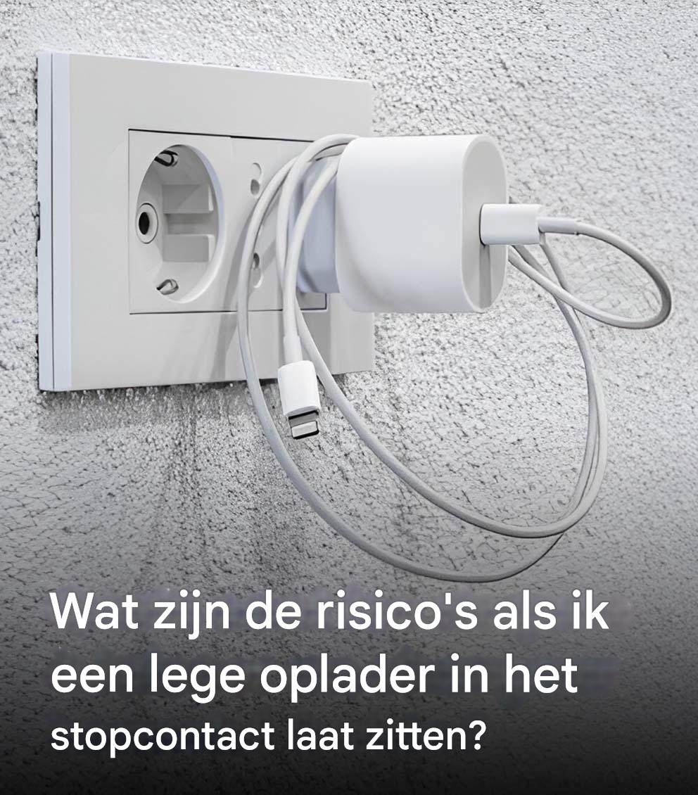 Een oplader die is aangesloten op het stopcontact verbruikt altijd stroom, ook als er geen apparaat op is aangesloten.