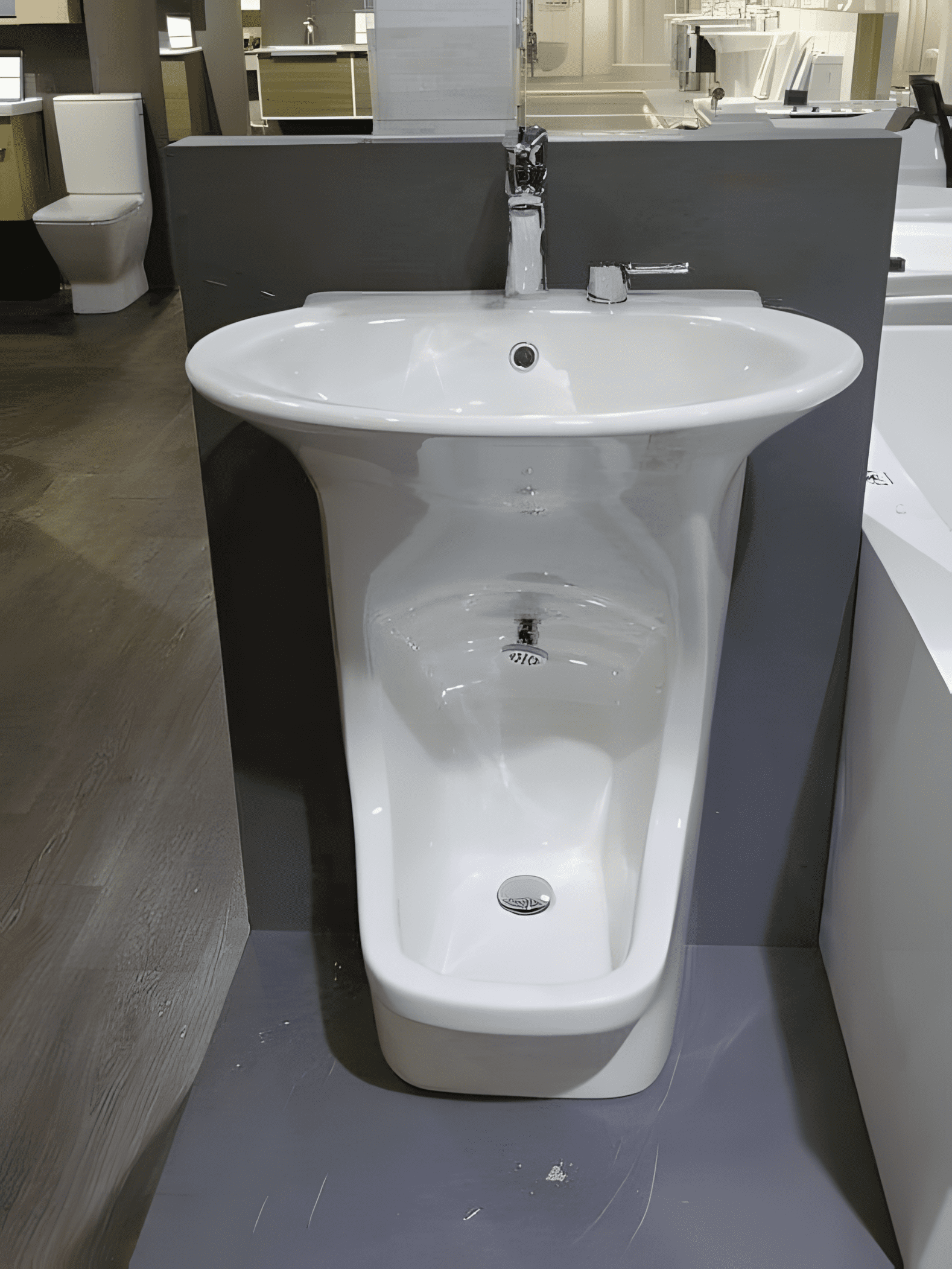 Toen u dit voorwerp zag, vroeg u zich waarschijnlijk af waar het voor gebruikt zou kunnen worden. Een klein, elegant wasbakje met ronde vormen… Dacht u misschien dat het een klassiek fonteintje was, of zelfs een urinoir? Denk nog maar eens goed na: dit ingenieuze hulpmiddel is ontworpen om een ​​dubbele praktische en hygiënische functie te bieden. Hiermee kunt u niet alleen uw handen, maar ook uw voeten wassen.