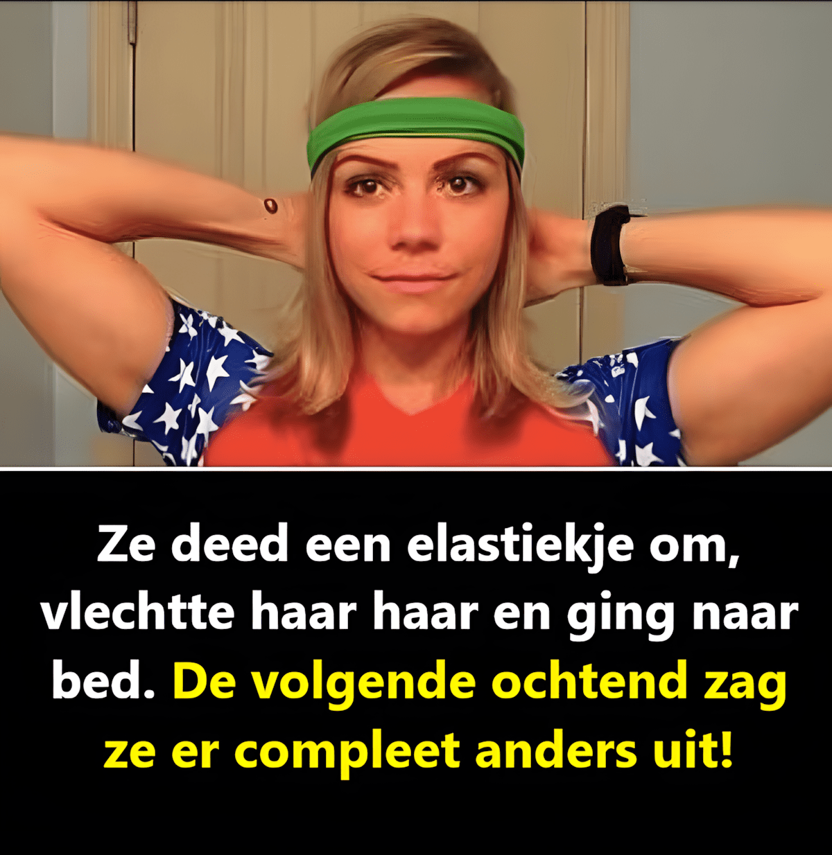 Ze deed een elastiekje om, vlechtte haar haar en ging naar bed. De volgende ochtend zag ze er compleet anders uit!