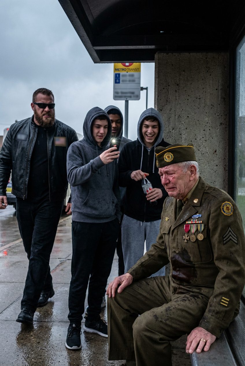 Ze maakten de medailles van een huilende veteraan belachelijk in een viraal TikTok-filmpje en lachten hem wreed uit – totdat een stille motorrijder die alles had gezien naar voren stapte, en wat hij vervolgens deed hen volledig deed verstijven en de hele situatie voorgoed veranderde.