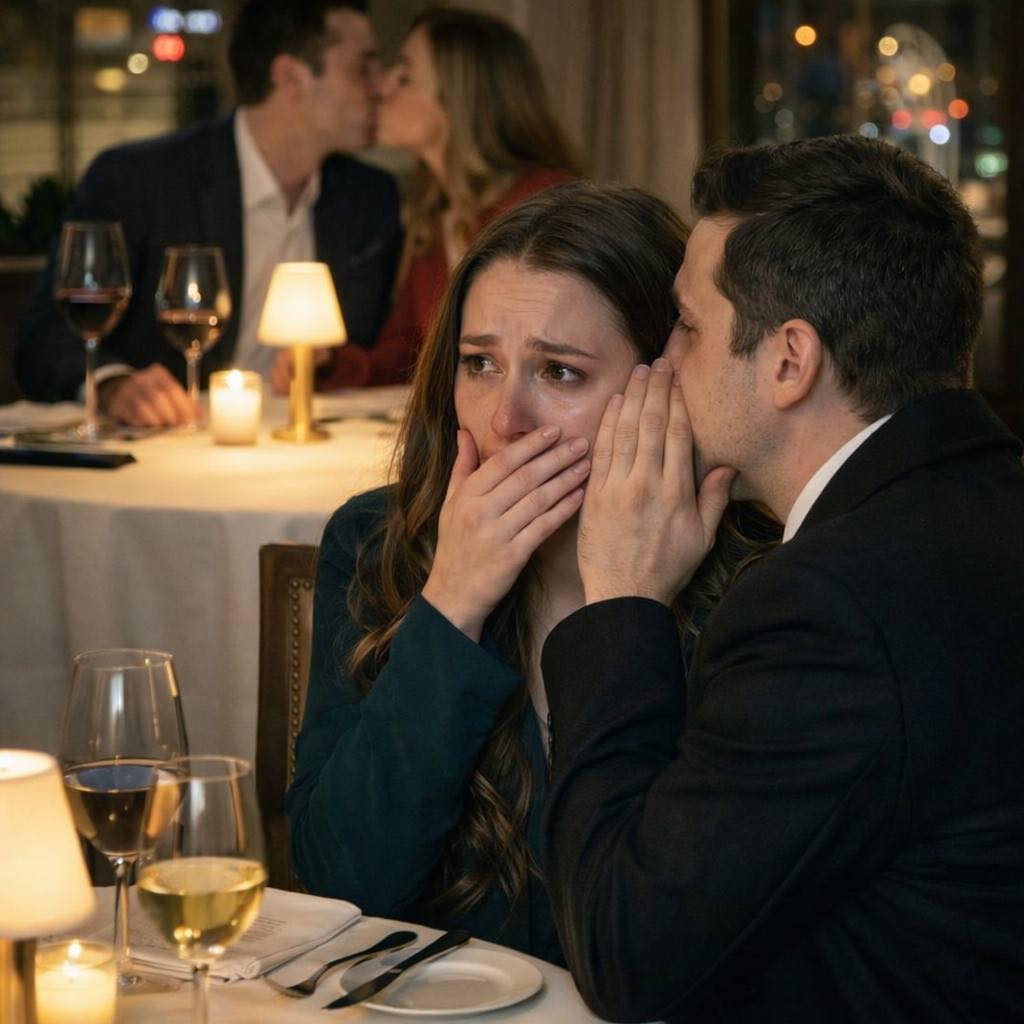 Om 7:15 keek Claire recht in de ogen van haar man Andrew, die in een druk restaurant zat. Ze zag hem samen met een vrouw die gemakkelijk lachte en haar hand tegen zijn gezicht legde, zoals mensen doen wanneer ze zich erg op hun gemak voelen bij elkaar. Er was geen aarzeling tussen hen. Geen spanning. Alleen dat soort gemak dat alleen met tijd en herhaling komt.