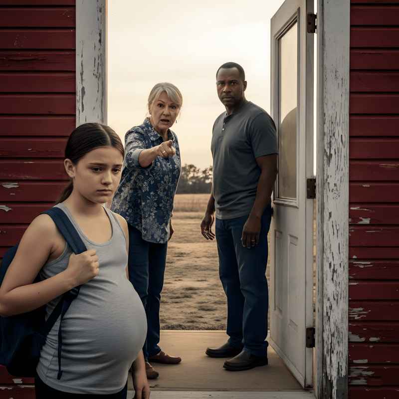 Tegen de avond stond ze op de veranda. Niet schreeuwen. Niet smeken. Alleen die ene tas, met rits en gevuld met alles wat ze had tijd om te grijpen—twee paar jeans, drie T-shirts, haar wiskunde bindmiddel, en een bijna lege fles prenatale vitaminen ze had opgepikt van de plaatselijke kliniek.