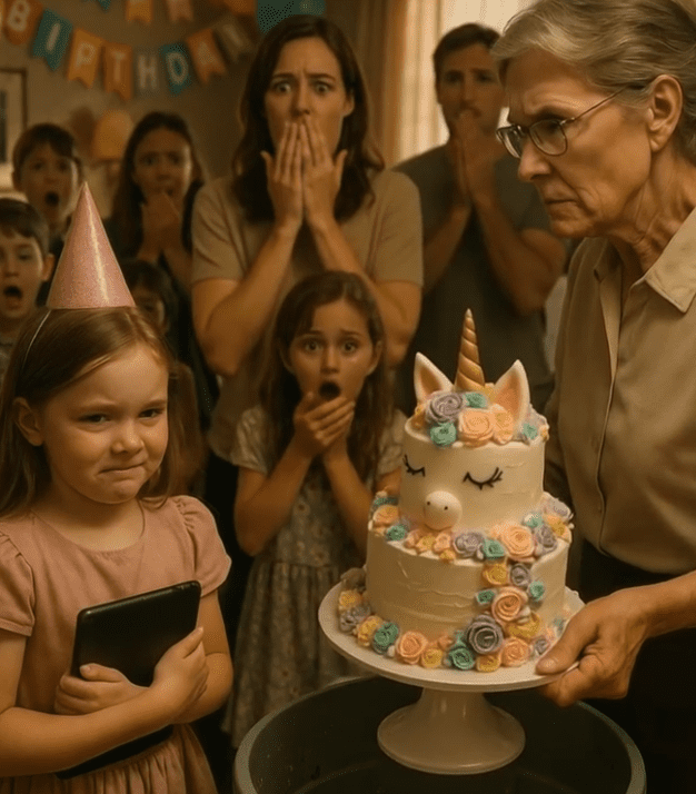 Mijn man Craig verstijfde, stil zoals altijd. De ogen van onze dochter Rosalie vulden zich met tranen op wat haar gelukkigste zevende verjaardag had moeten zijn. Ouders snakten naar adem. Kinderen werden stil.